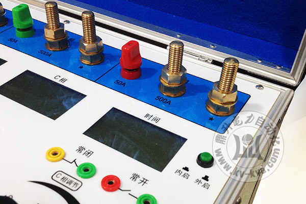 说明DERJ-H三相热继电器测试仪图片包括:机箱、控制面板、接线柱、测试线
