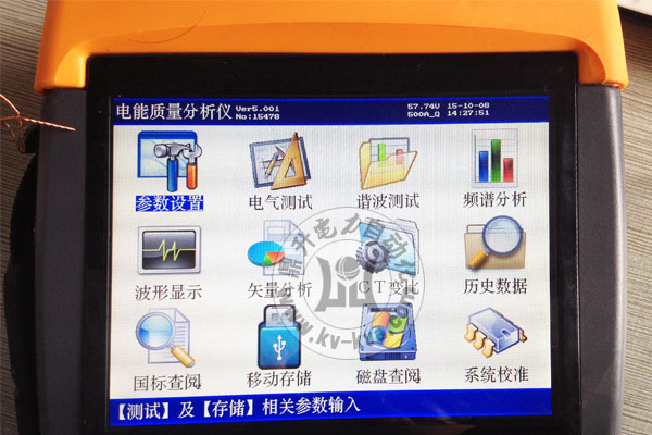 说明DGDZ-S手持式电能质量分析仪液晶屏图片包括:主菜单、谐波测试、波形显示、移动存储、参数设置