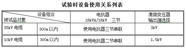 串联谐振装置容量定为54kVA/54kV,分三节电抗器,电抗器单节为18kVA/18kV/1A/55H通过组合使用能满足上述被试品的试验要求。