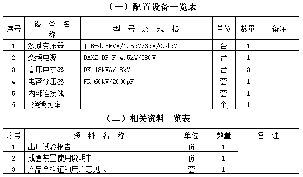 1. 激励变压器JLB-4.5kVA/1.5kV/3kV/0.4kV 1台