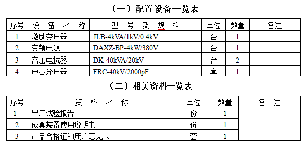 结论:串联谐振装置容量定为80kVA/40kV,分二节电抗器,电抗器单节为40kVA/20kV/2A/44H通过组合使用能满足上述被试品的试验要求。