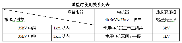 35kV电缆,400mm2,长度1000m,电容量≤0.2146μF,试验频率为30-300Hz,