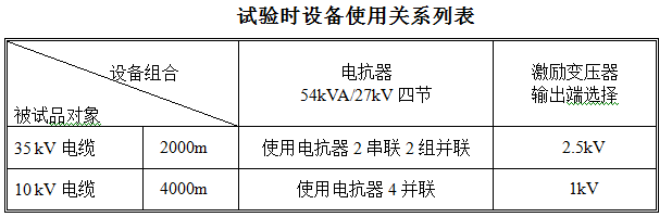 结论:串联谐振装置容量定为216kVA/54kV,分四节电抗器,电抗器单节为54kVA/27kV/2A/69H通过组合使用能满足上述被试品的试验要求。
