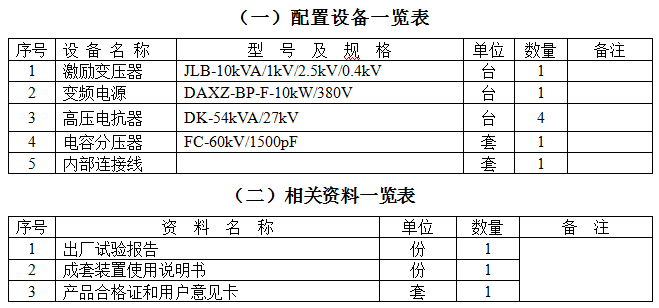 1. 激励变压器JLB-10kVA/1kV/2.5kV/0.4kV 1台