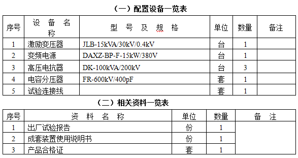 1. 激励变压器JLB-15kVA/30kV/0.4kV 1台