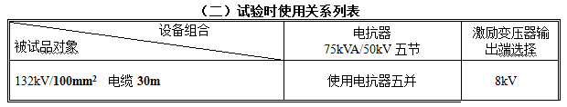 132kV电缆100mm2,长度30米,电容量≤0.023uF,试验电压≤250kV。