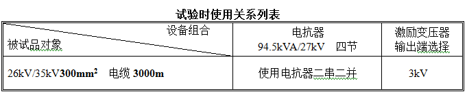 35kV,300平方毫米交联电缆3000m,试验频率30-300Hz,电容量≤0.58μF,试验电压52kV。