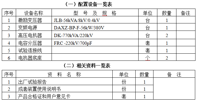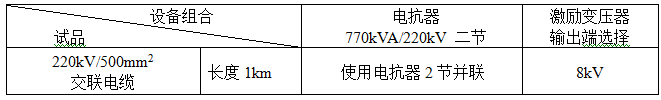 结论:串联谐振装置容量定为1540kVA/220kV,分二节电抗器,单节为770kVA/220kV/3.5A/300H通过组合使用能满足上述被试品的试验要求。