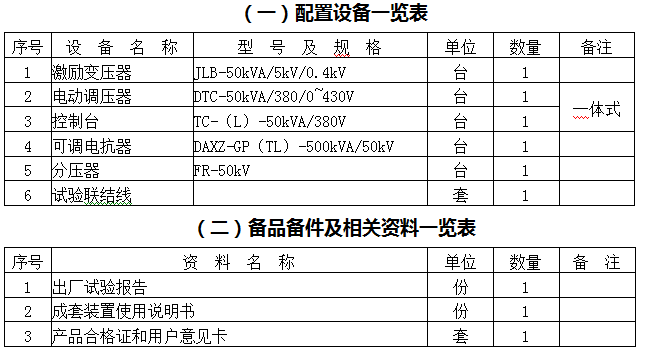 1. 激励变压器JLB-50kVA/5kV/0.4kV 1台