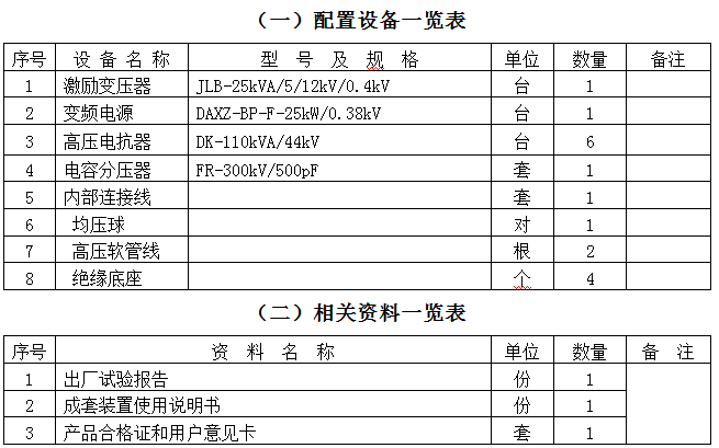 1. 激励变压器JLB-25kVA/5kV/12kV/0.4kV 1台