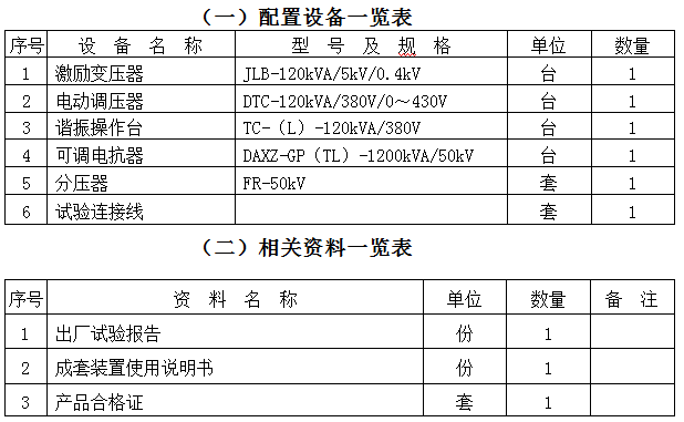 3. 谐振操作台TC-(L)-120kVA/380V 1台
