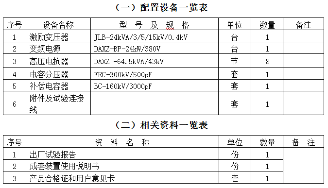 1. 激励变压器 JLB-24kVA/3kV/5kV/15kV/0.4kV 1台