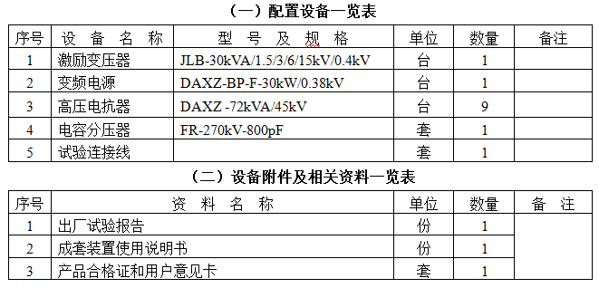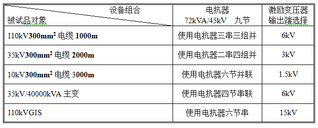2. 35kV/300mm2电缆2000m,电容量≤0.38μF,试验频率为30-300Hz,试验电压52kV。