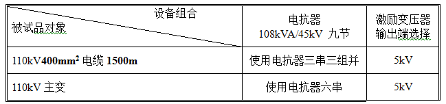 64kV/110kV,400mm2电缆1500m,电容量≤0.247μF,试验频率为30-300Hz,试验电压128kV。