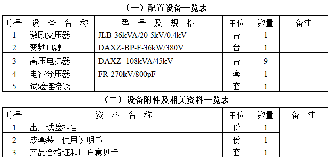 1. 激励变压器JLB-36kVA/5kV/20kV/0.4kV 1台