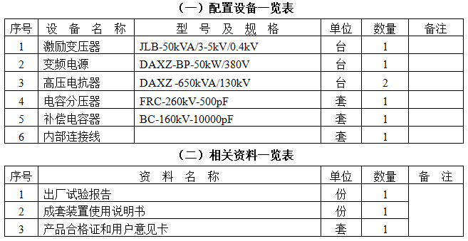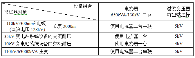 结论:串联谐振装置容量定为1300kVA/130kV,分二节电抗器,电抗器单节为650kVA/130kV/5A/130H通过组合使用能满足上述被试品的试验要求。