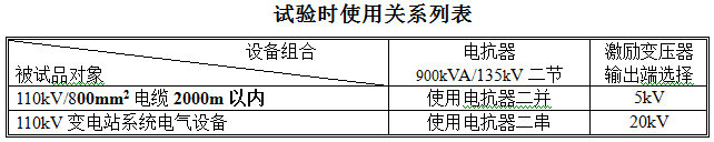 64kV/110kV,800mm2电缆2000m,电容量≤0.448μF,试验频率为30-300Hz,试验电压128kV。