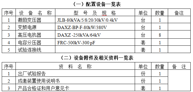 1. 激励变压器JLB-80kVA/5/8/20/30kV/0.4kV 1台