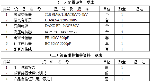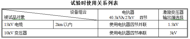 四、 串联谐振装置容量及试验关系列表